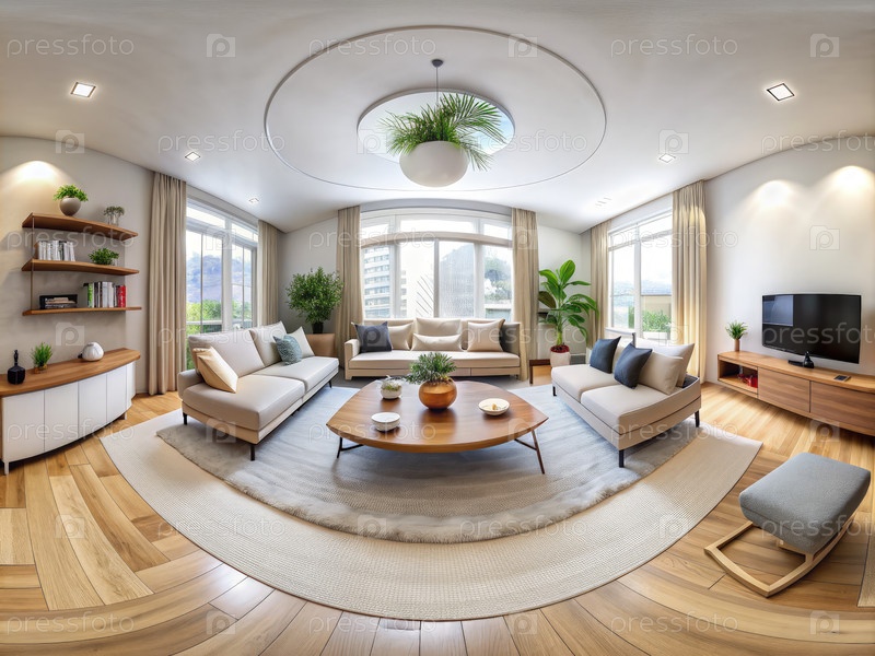 Минималистский дизайн интерьера гостиной с современными мебелью и естественным светом
