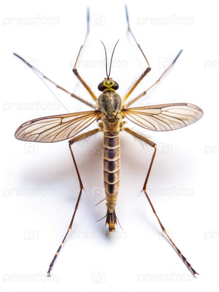 Ближайшее изображение коричневого комара на белом фоне