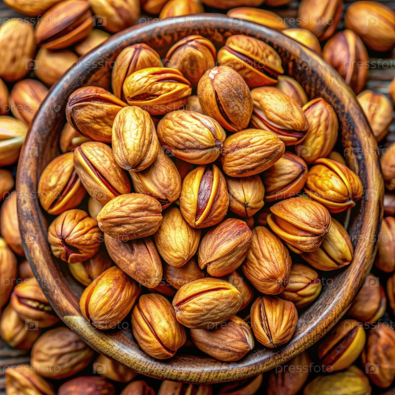 Вид сверху на фисташки в деревянной миске