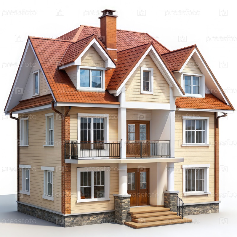 Трехэтажный дом-триплекс с коричневой крышей и белой отделкой