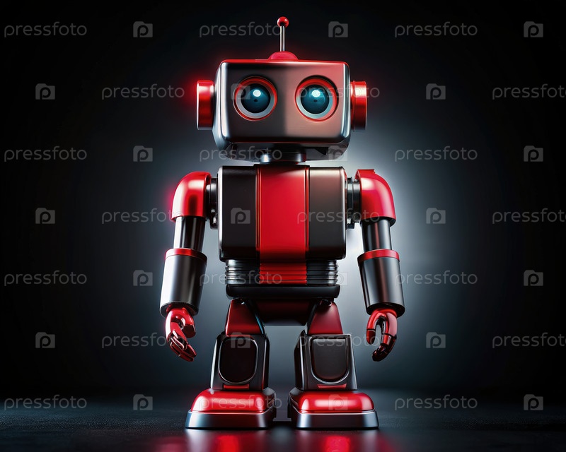Красный и черный робот, стоящий на темном фоне