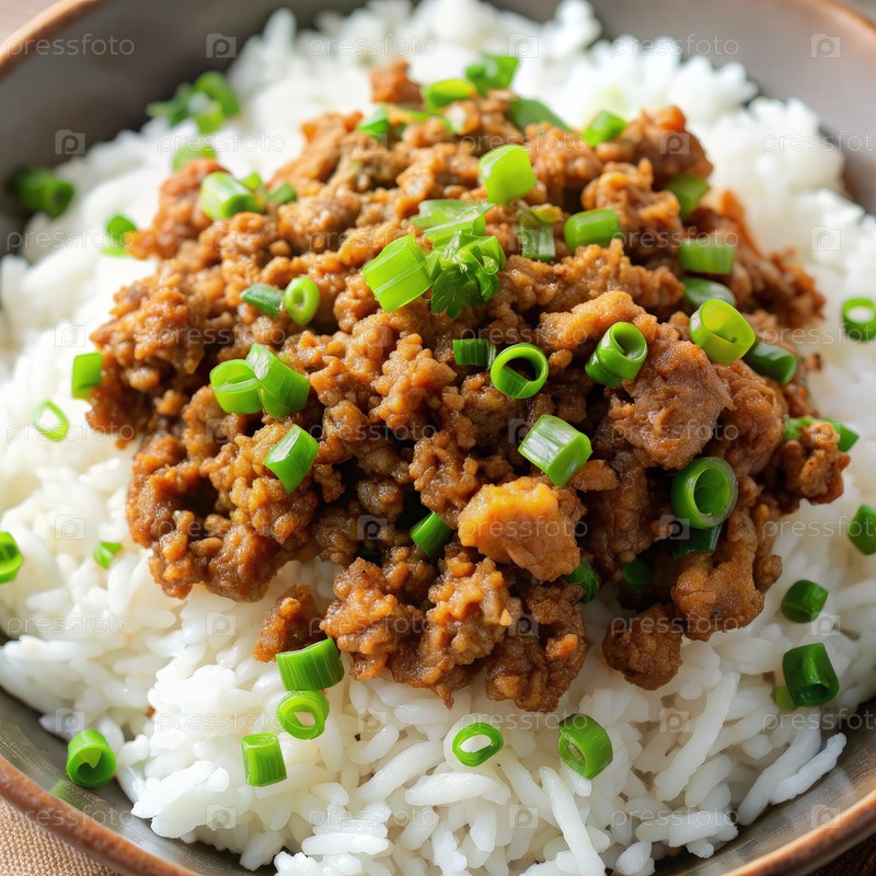 Ближайшее изображение фаршированного мяса и риса с зеленым луком