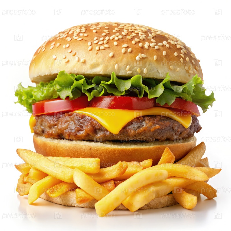 Ближайшее изображение вкусного чизбургера с французскими картофелями