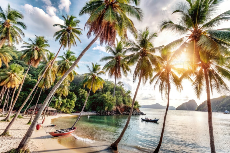 Пальмовые деревья составляют кадр солнечной пляжной сцены в Таиланде