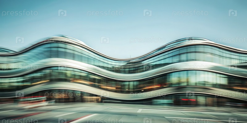 Фасад здания из волнообразного стекла с размытым движением в городе. генерирующий современный ИИ