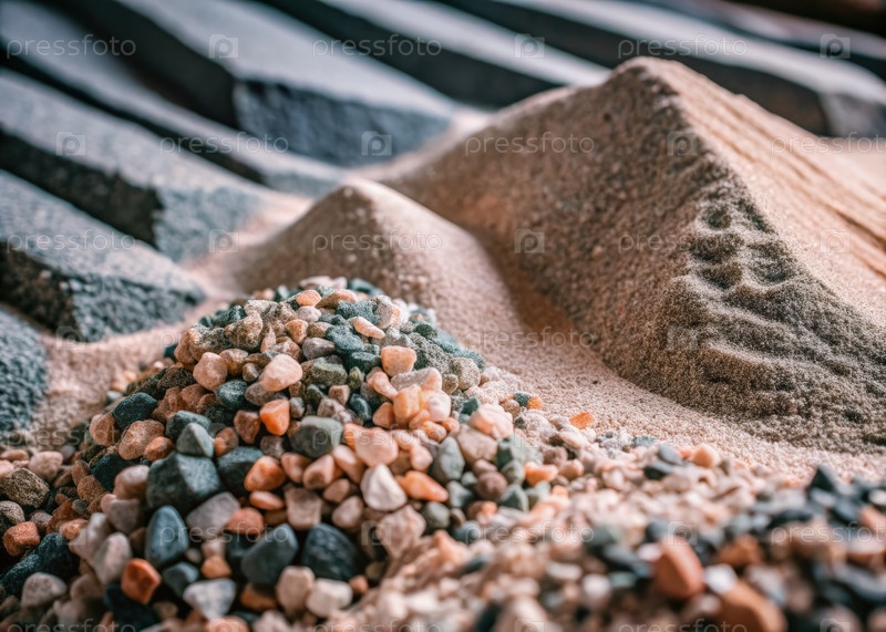 Ближайшее изображение измельченного камня и песка на стройплощадке. генеративный ИИ