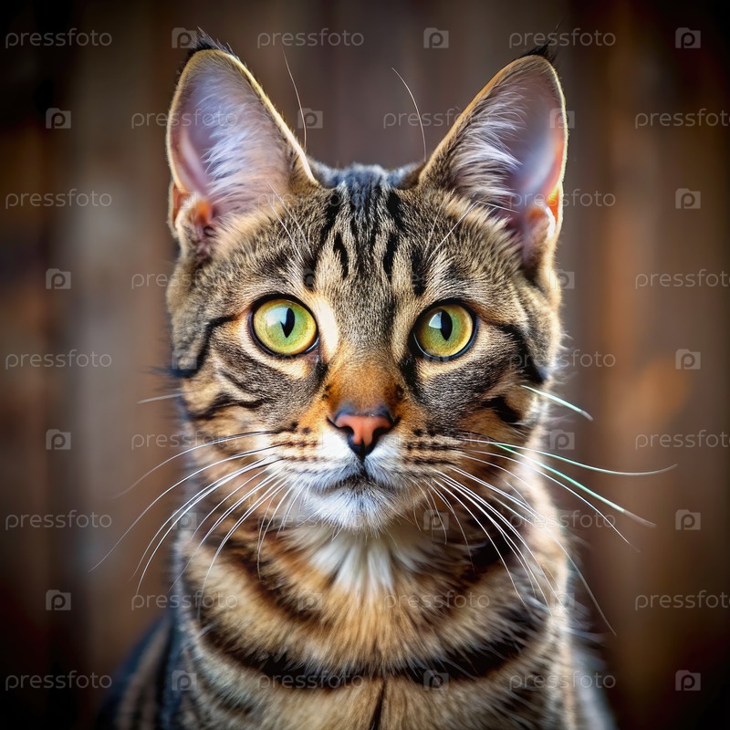 Близкий портрет полосатой кошки с ярко-зелеными глазами. генеративный ИИ
