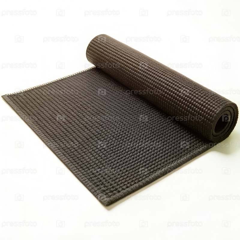 Черный йога-мат, свернутый на белом фоне