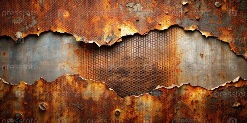 Разорванная металлическая текстура на гранж-фонде с ржавой поверхностью