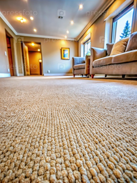 Близкий взгляд на плюшевый ковер в современной гостиной