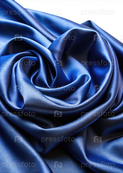 Ближайшее изображение синей шелковой ткани, обтянутой на белом фоне