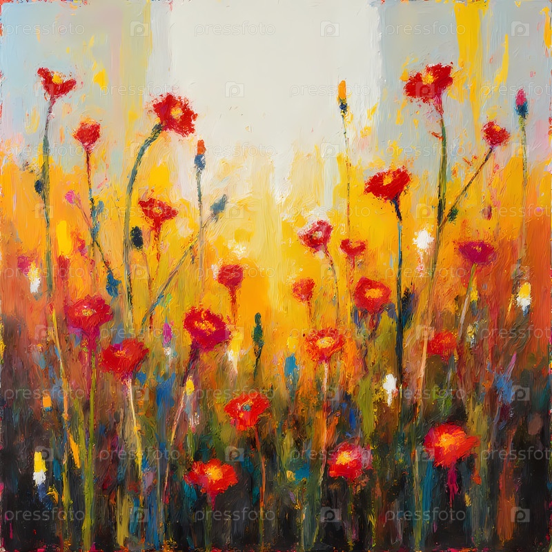 Яркие дикие цветы тянутся к солнцу, создавая потрясающий гобелен цвета на теплом золотом фоне Красота природы захватывает и вдохновляет всех, кто ее видит Генеративный ИИ