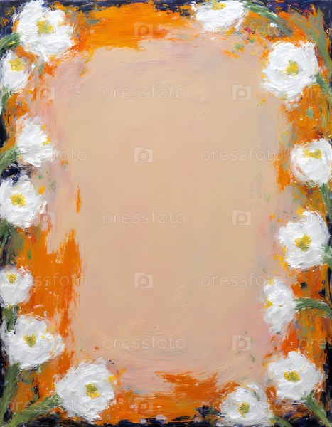 Нежные белые цветы танцуют вокруг пустого холста, приглашая к себе личные письма и искренние замечания. теплый оранжевый фон добавляет радостный оттенок, идеально подходит для любых случаев Generative AI