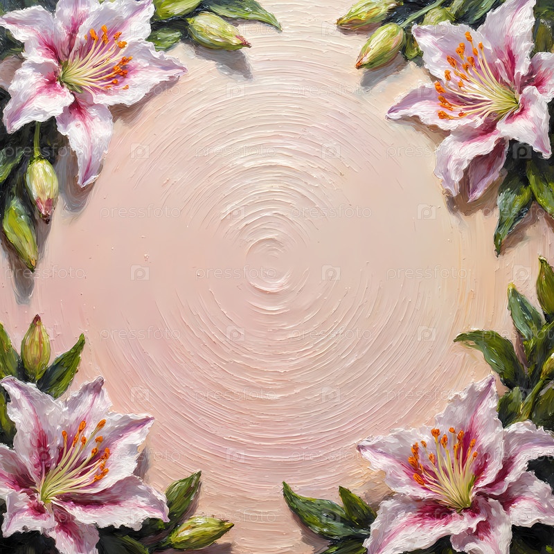 Деликатные розовые лилии обрамляют мягкий, текстурированный фон, демонстрируя красоту природы.Живые листочки вспыхивают жизнью, приглашая на момент спокойствия и вдохновения Generative AI