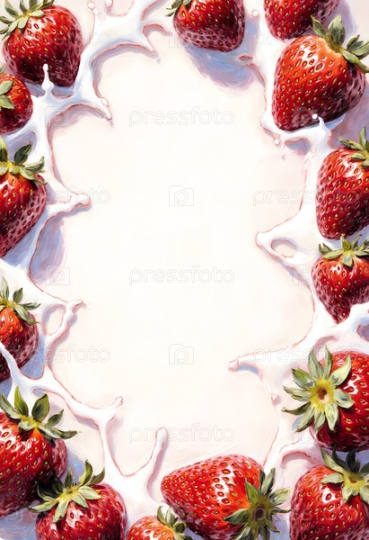 Свежие клубники искусственно расположены вокруг сливочного йогурта. Они создают яркую, приятную сцену. Яркий свет подчеркивает их сочные текстуры и богатые цвета, вдохновляя влечение Generative AI