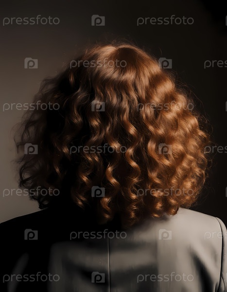 Женщина с потрясающими красными кудрявыми волосами стоит спиной к зрителю, одетая в шикарный наряд в слабо освещенном месте, наслаждаясь спокойствием вечера Generative AI