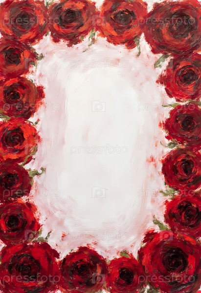 Красивые красные розы создают потрясающую границу вокруг пустого пространства, идеально подходят для личных сообщений или художественных выражений