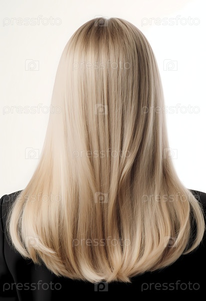 В яркой, слабо освещенной среде человек стоит с прямыми светлыми волосами в каскадах по спине.Прическа отражает элегантность и простоту на чистом фоне Generative AI