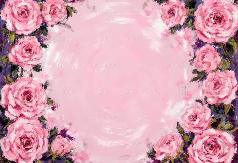 Розовые розы грациозно цветут вдоль краев мягкого пастельного фона, создавая очаровательное полотно.Эта прекрасная установка приглашает к теплым чувствам и сладким нотам для любого случая Generative AI