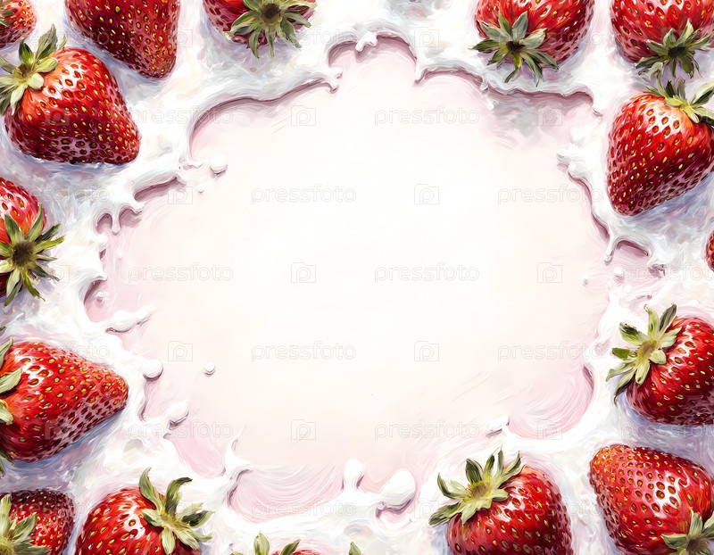 Чашка освежающего клубничного йогурта в окружении ярких, спелых ягод создает красочное и вкусное угощение.Идеально подходит для теплой обеденной закуски или здорового десерта Generative AI
