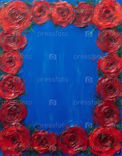 Яркие красные розы окружают ярко голубое полотно, приглашая к мыслям о любви и радости.Этот фон открытки вызывает творчество и тепло для специальных нот Генеративный ИИ