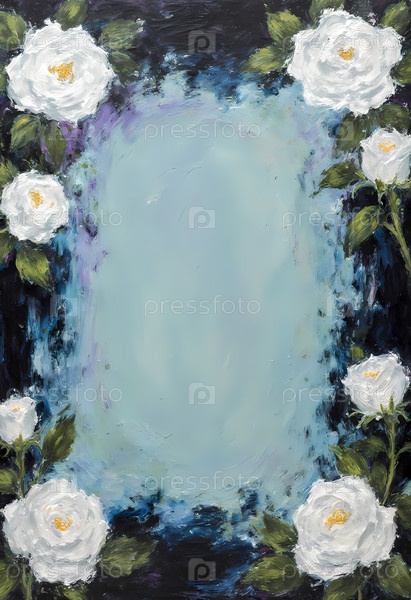Нежные белые розы изящно цветут, создавая мягкое синее пространство, которое приглашает к себе вдумчивые сообщения и теплые чувства Generative AI
