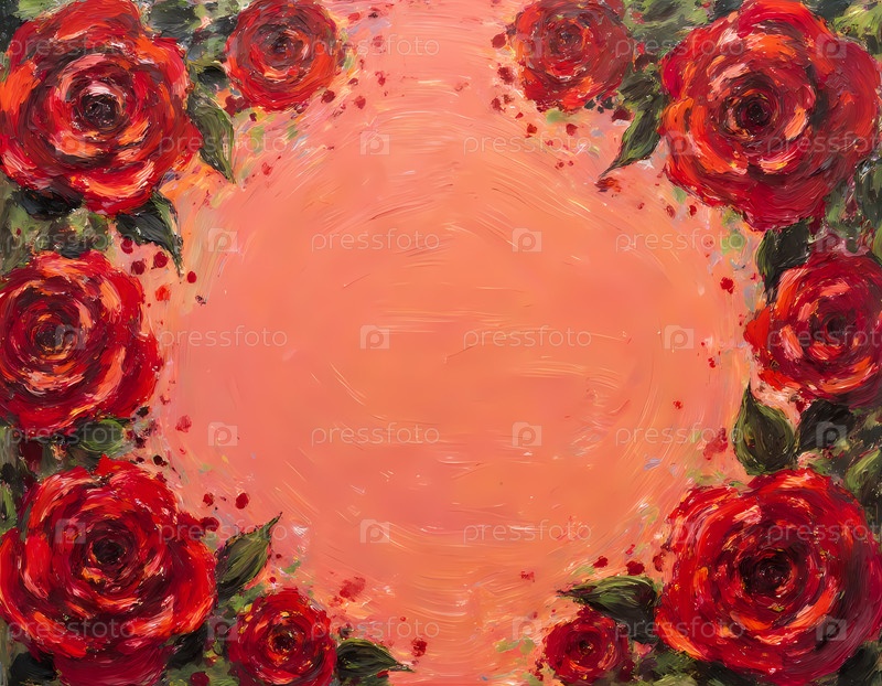 Ослепительный массив ярко-красных роз окружает персиковое пространство, вызывая чувства любви и красоты.Идеально подходит для записок, приветствий и романтических чувств Generative AI