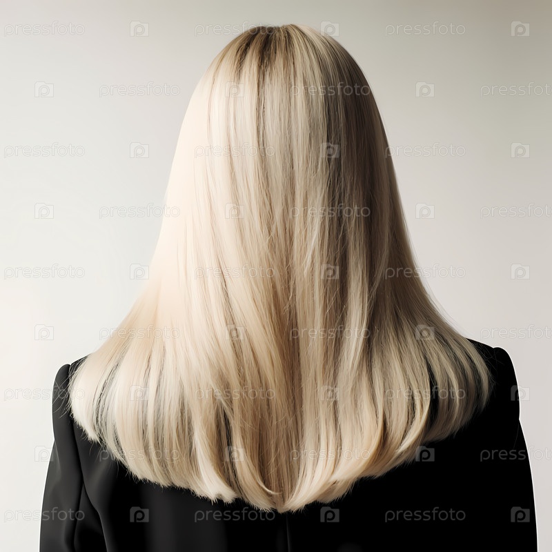 Длинные гладкие блондинки бегут плавно и оформляют силуэт человека в шикарном наряде.Мягкий свет подчеркивает красоту и элегантность волос на нейтральном фоне Generative AI