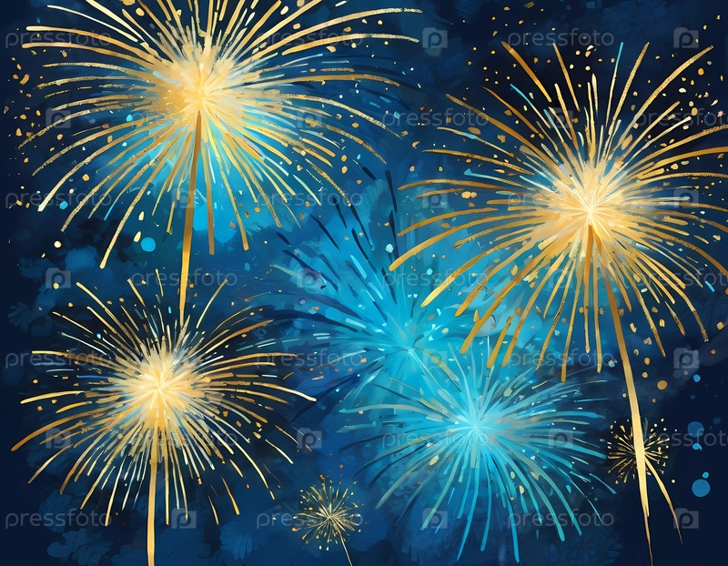 Цветные фейерверки освещают ночное небо, когда люди празднуют Новый год. Вспышки золота и синего искры радости и волнения знаменуют новое начало. Фейерверк взрывается против темного неба. Генеративный ИИ