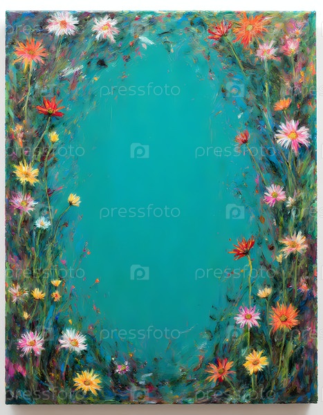 Вибрирующие дикие цветы расцветают вокруг тихого бирюзового пространства, приглашая к творчеству и теплоте.Этот фон открытки предлагает холст для сердечных замечаний и радостных чувств Generative AI