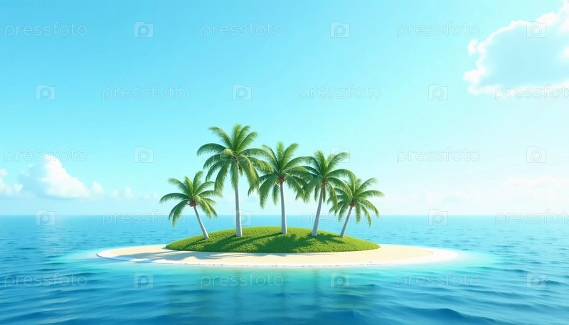 Спокойный остров выходит из лазурного моря, украшенный пышными пальмами и мягким песчаным побережьем, приглашая путешественников греться в его спокойной красоте и теплом солнечном свете Generative AI