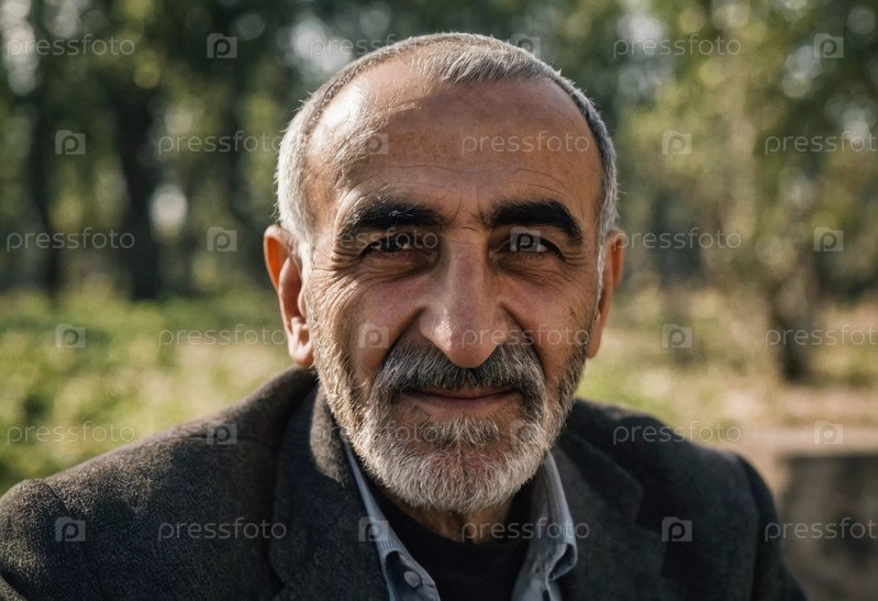 Пожилой армянский мужчина с теплой улыбкой отражает спокойствие своего окружения. его глубокие морщины рассказывают истории о богатой жизни, проведенной в мирной деревне Generative AI