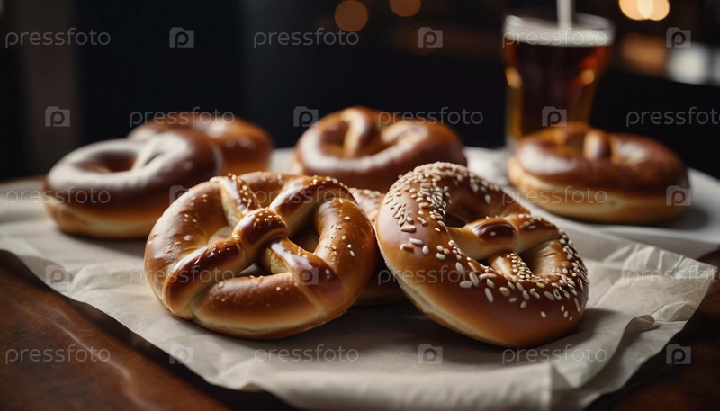 В теплой кухне, наполненной ароматом свежей выпечки, бутерброды из сусамового бегеля плетут и готовят на деревянной поверхности, демонстрируя свою золотисто-коричневую корочку и богатую текстуру