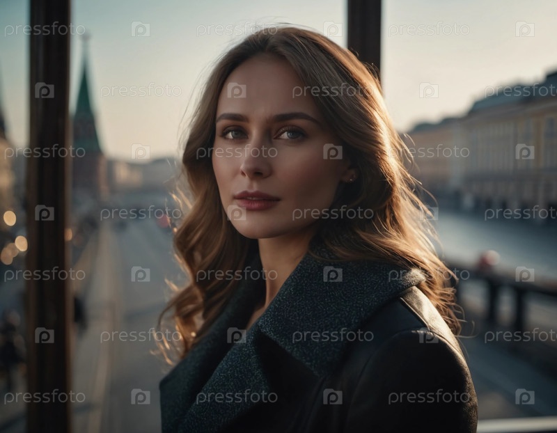 Потрясающая женщина с расплывчатыми волосами задумчиво смотрит вглубь Generative AI