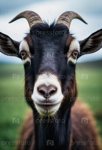 Черно-белая коза стоит на лесной поляне, ее любопытное выражение и отличительные рога ловят свет.Окружающая зелень улучшает спокойную атмосферу того момента.Генеративный ИИ