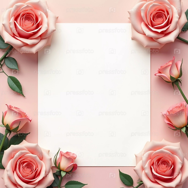 Деликатные розовые розы окружают пустое пространство, идеально подходит для написания личных сообщений.Эта прекрасная цветовая аранжировка придает элегантность любому случаю.Фон на день рождения, День матери, День святого Валентина