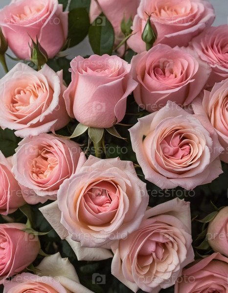 Великолепное расположение розовых роз демонстрирует их бархатные листья и мягкие оттенки, создавая приятную атмосферу, идеально подходящую для празднований или интимных собраний Generative AI