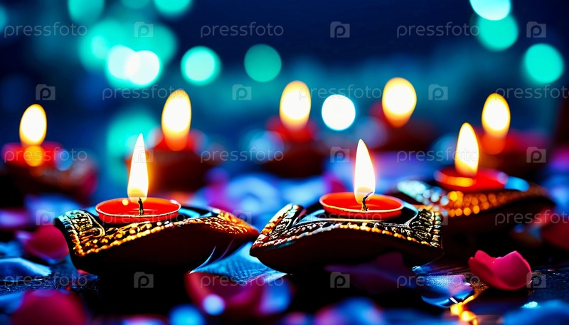 Цветные лампы дия светят мягко в темном пространстве, создавая мирную атмосферу.Этот красивый дисплей символизирует празднование Дивали и Рамадана, объединяющие культуры.Генеративный ИИ