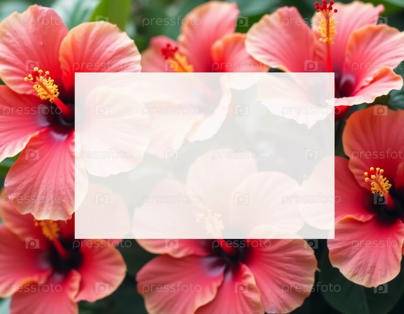 Вибрирующие цветы гибискуса расцветают и мягкий полупрозрачный фон для текста, улучшая естественную красоту. Мягкий свет добавляет спокойную атмосферу в тропическую обстановку. Фон для упаковки чая. AI