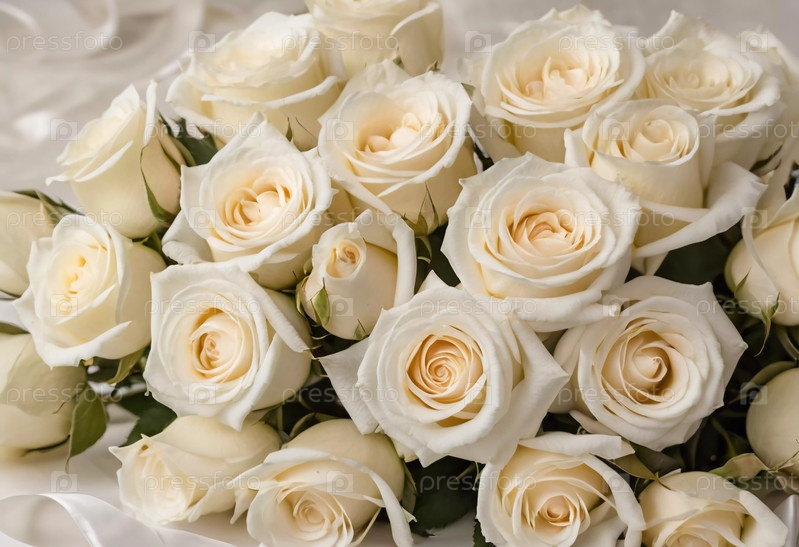 Этот великолепный букет свежих белых роз имеет нежные листья, которые идеально подходят для празднования любви и спокойствия, добавляя радости и элегантности в любую обстановку Generative AI
