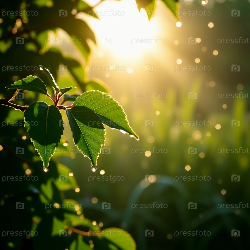 Утренний свет нежно целует листья, нагруженные росой, создавая волшебную атмосферу в пышном саду.Мягкие лучи освещают сцену, демонстрируя красоту и спокойствие природы Generative AI