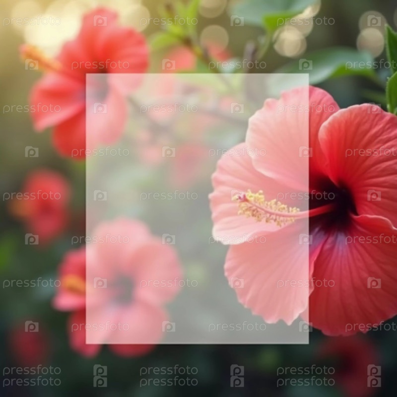 Вибрирующие цветы гибискуса расцветают на мягком полупрозрачном фоне, улучшая естественную красоту. Мягкий свет добавляет спокойную атмосферу в тропическую обстановку. Фон для упаковки чая. ИИ