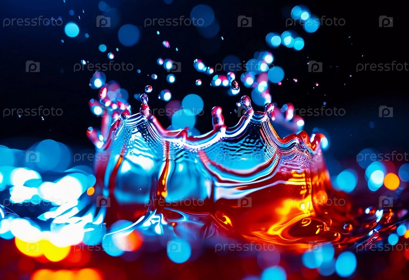 Множество ярких капель вспыхивает в красочном брызге, создавая потрясающий дисплей ярких оттенков на мягко размытом фоне. Замерзающее движение. Красота природы в данный момент. ИИ