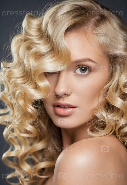 Мягкие светящиеся локоны обрамляют лицо, подчеркивая яркую и здоровую текстуру светлых волос. Близкий план прекрасно улавливает сложные детали. Косметика для ухода. Генеративный ИИ