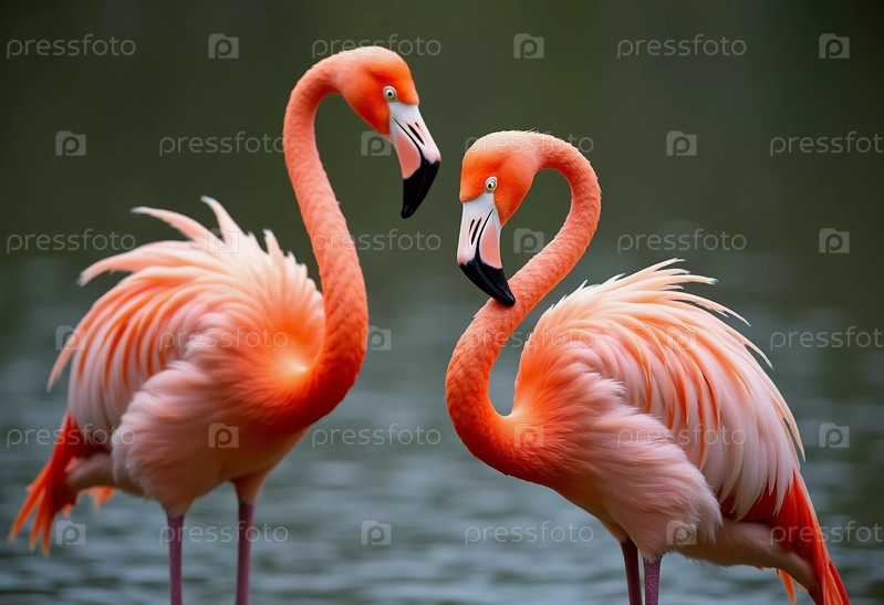 Фламинго собираются в тихом пруду, их оранжевые перья отражаются на воде. Они играют друг с другом и создают потрясающий вид природы. Flamingo Phoenicopterus - род птиц