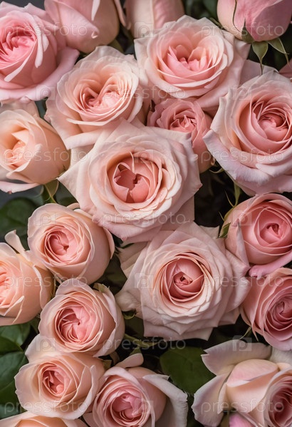 Богатое расположение розовых роз демонстрирует гармоничное сочетание мягких оттенков и нежных текстур, вызывая чувства любви и спокойствия в солнечном саду Generative AI
