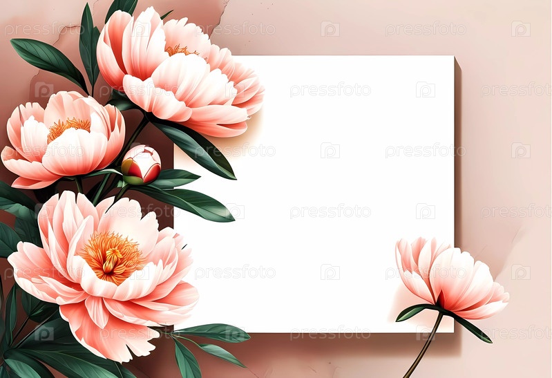 Деликатные розовые пионы украшают угол, их мягкие лепестки усиливают спокойный фон пустой открытки.Идеально подходит для выражения мыслей и чувств