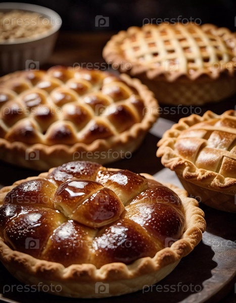 Свежевыпеченные кондитерские изделия и пироги привлекательно расположены на столе в теплой пекарне