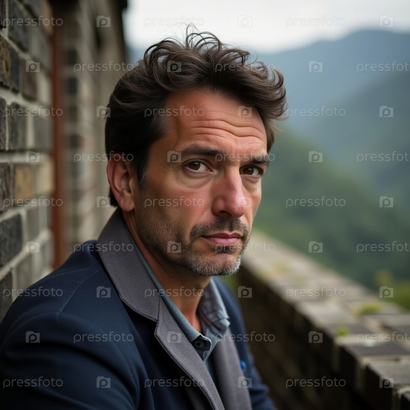 Человек вдумчиво смотрит вдаль, окруженный потрясающим горным фоном. спокойная атмосфера намекает на глубокое внутреннее отражение и связь с природой