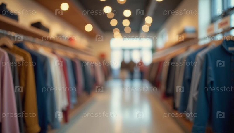 В магазине современной одежды стеллажи демонстрируют ассортимент модной одежды. яркое освещение улучшает приветливую атмосферу, что делает его идеальным для изучения покупателями. боке. генерировать ИИ